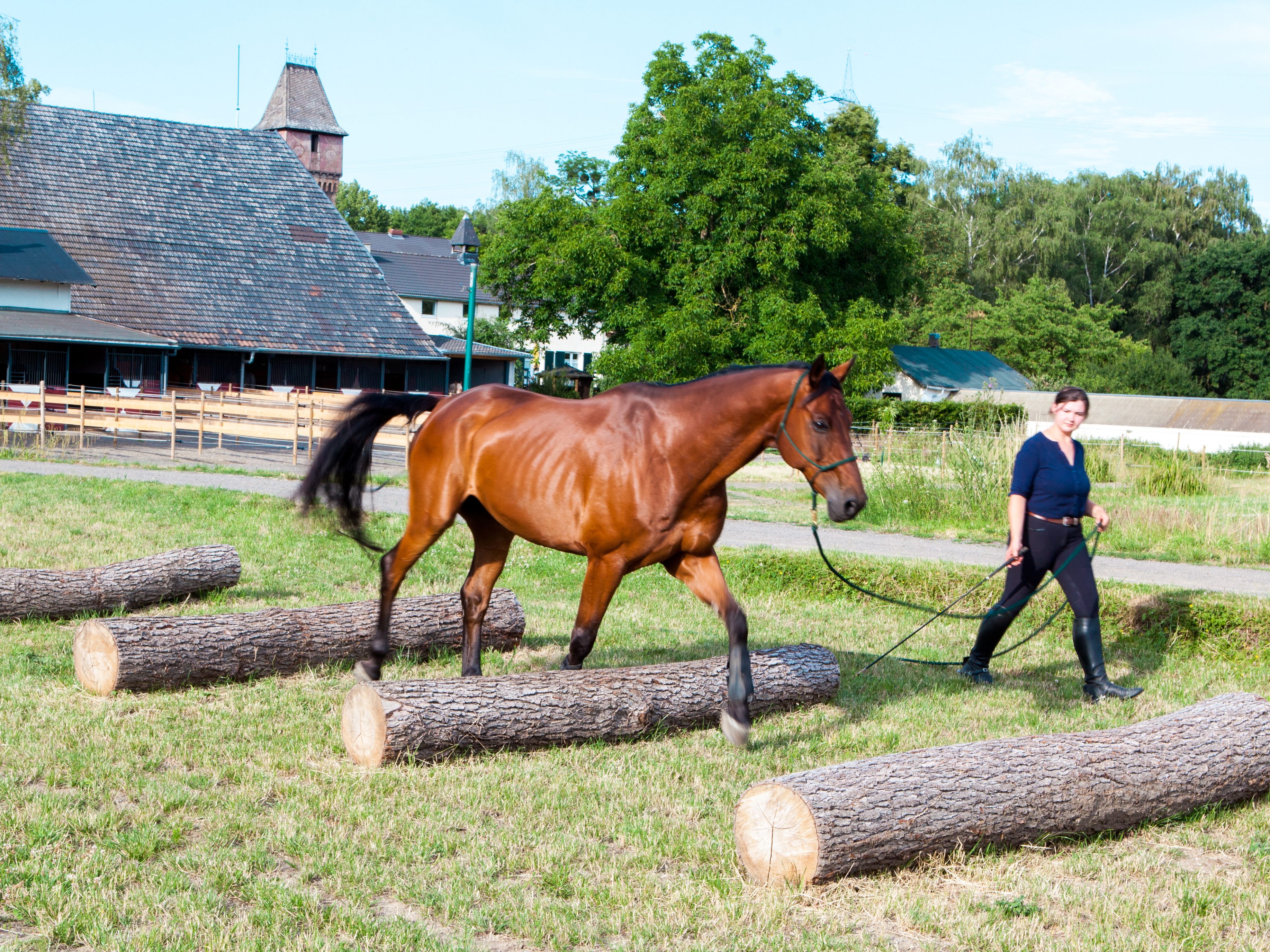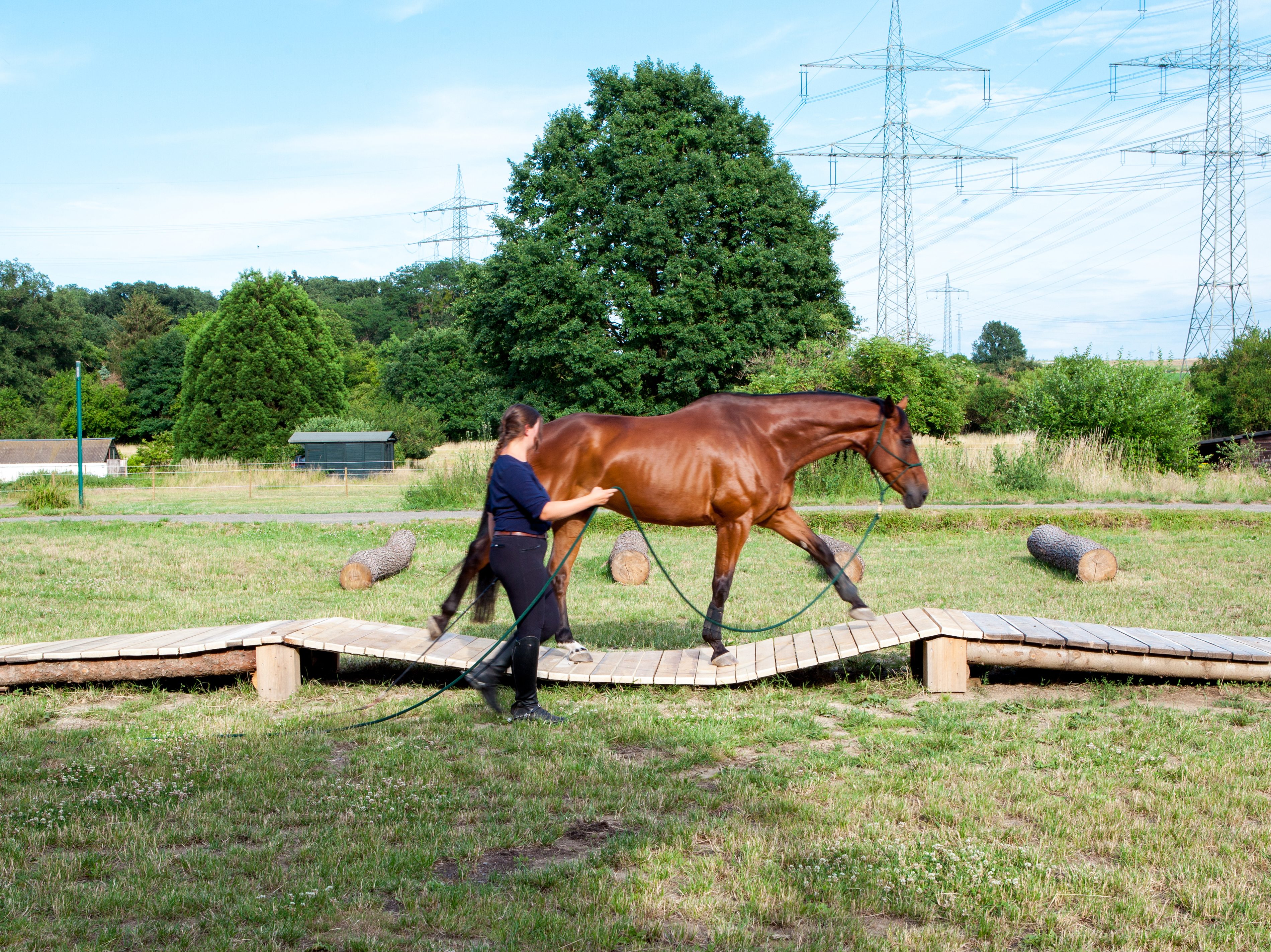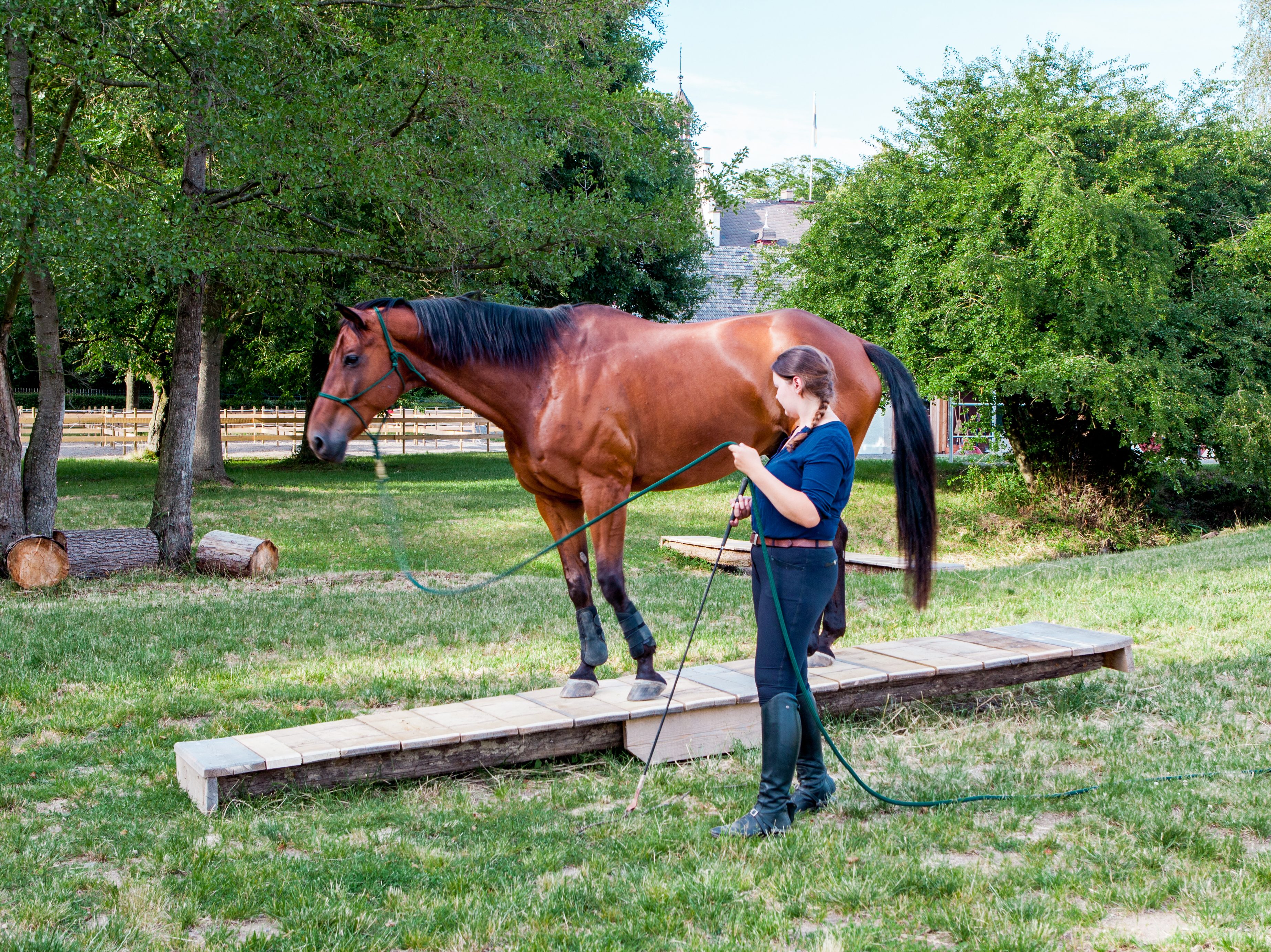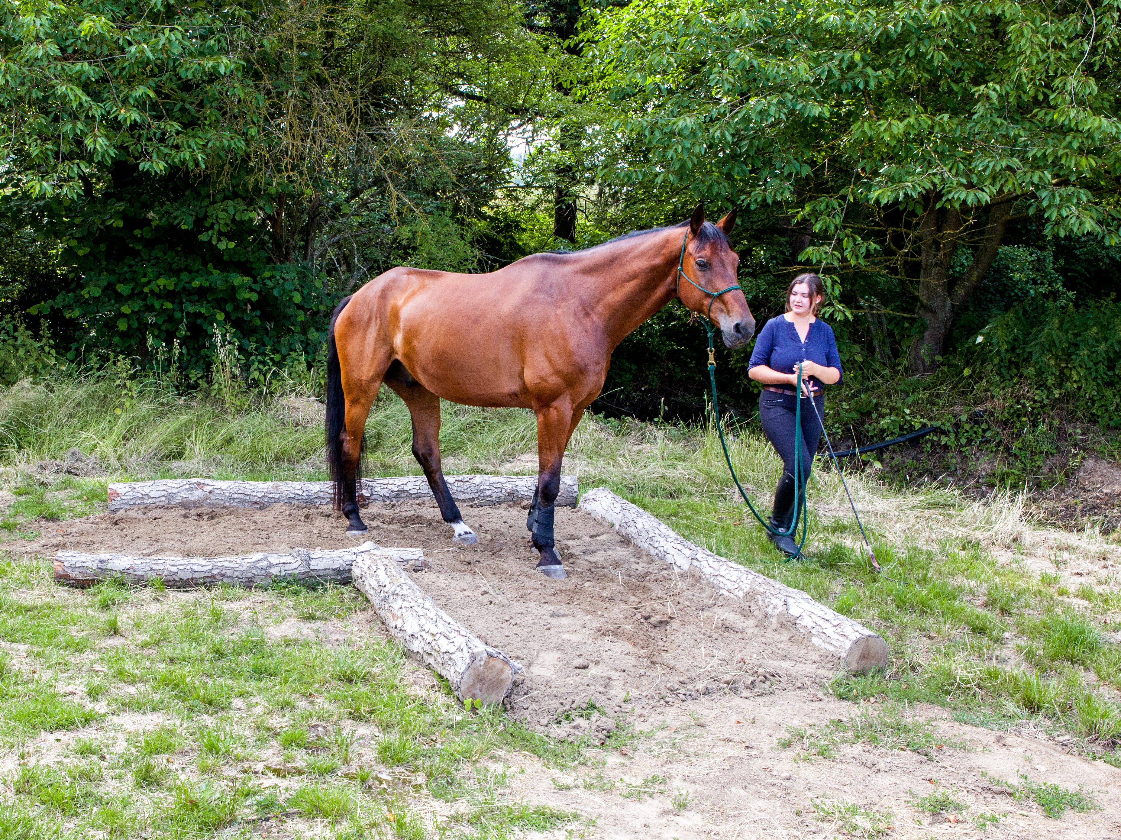 Slowly passing over the tree trunks, the horse learns to trust its own surefootedness and improves leg coordination. Balancing and developing load-bearing over the logs is a particularly helpful exercise for younger horses. The tree trunks are ideal for warm-ups.