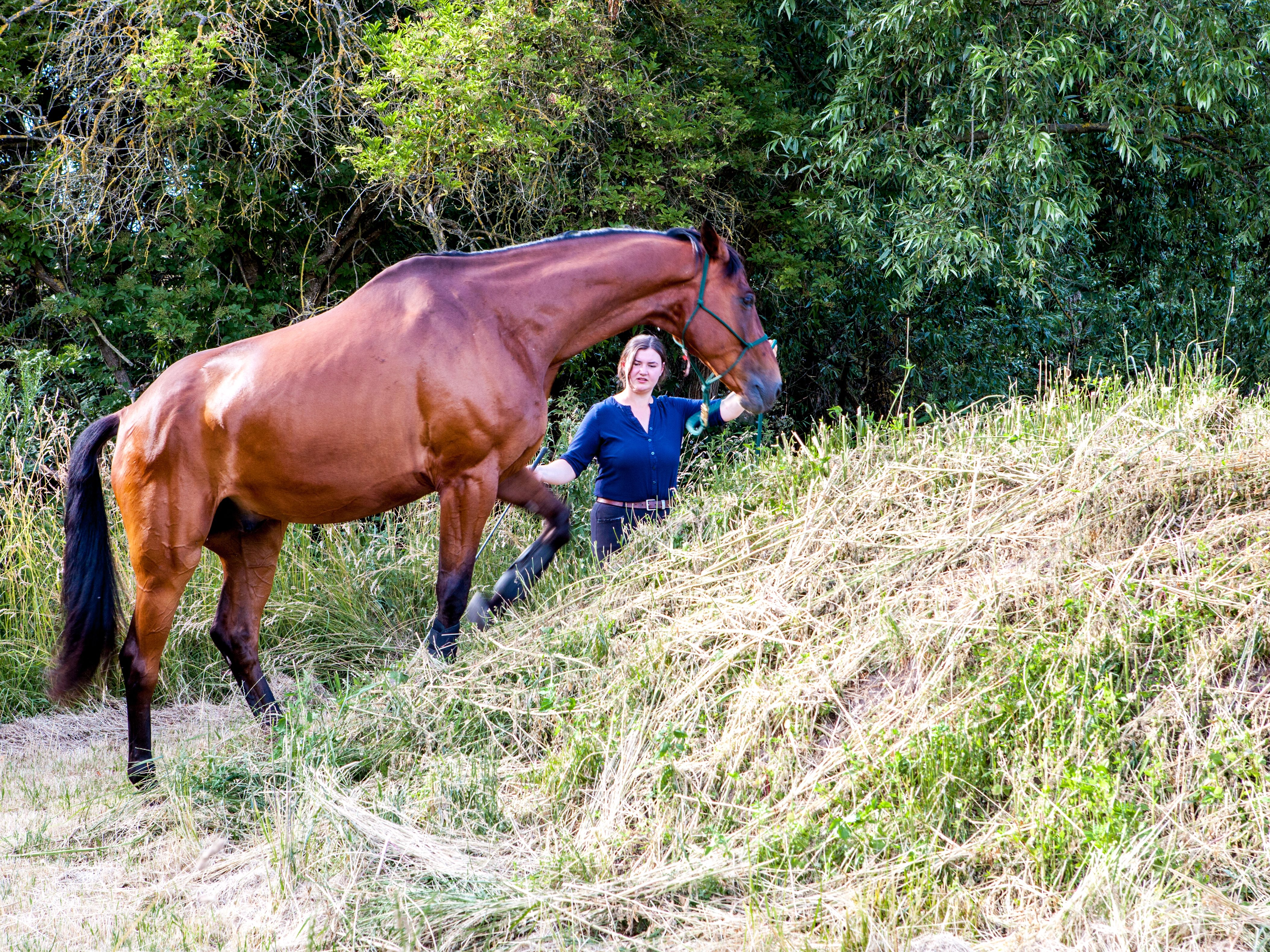 Training on the hill works out the horse's muscles and promotes strength-building during controlled climbs up and down. The hill also lends itself well to practising stopping on command. To increase the level of difficulty, simply vary the pace or practise turning on the hill. Be sure to take plenty of breaks to rest and reward the horse.
